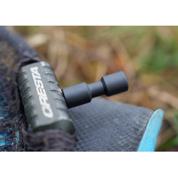 El bloque de conexión para accesorios Cresta es muy valioso para la pesca intensiva con caña y feeder, donde es esencial una instalación fiable y estable. Todos los pescadores conocen la frustración de un equipo que no se mantiene en su sitio como debería, especialmente en condiciones difíciles como corrientes, vientos fuertes o paso de barcos. Por eso, la elección de materiales de calidad no es un lujo, sino una necesidad absoluta. Este bloque de conexión cumple con este requisito gracias a su construcción totalmente en aluminio, sin ningún componente de plástico. Esto garantiza no solo una resistencia excepcional, sino también una durabilidad que supera las expectativas. Su sólido diseño garantiza un rendimiento fiable año tras año, incluso con un uso intensivo y frecuente. El bloque se adapta a todas las patas de sistema de 36 mm y se puede fijar de forma fácil, firme y segura con un tornillo compacto de aluminio. Este tornillo tiene ranuras externas que ofrecen un excelente agarre, lo que permite un manejo cómodo incluso con las manos mojadas o frías. Las dos puntas incluidas, una versión corta de 5 cm y otra más larga de 18 cm, están fabricadas con el mismo aluminio de alta calidad y equipadas con una rosca estándar, lo que permite utilizar accesorios comunes sin necesidad de modificaciones.