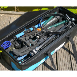 La bolsa base extra larga TSD 114 es una solución robusta y espaciosa para transportar accesorios de pesca más largos de forma segura y eficiente. Con una capacidad de 78 litros y un diseño alargado, esta resistente bolsa es ideal para artículos que suelen ser difíciles de guardar, como brazos de cebador, carretes de sacadera, varas de medir y patas de trípode. Fabricada con material EVA impermeable de alta calidad, la bolsa ofrece una protección excepcional contra la humedad, la suciedad y la abrasión. Su sólida estructura mantiene su forma incluso bajo presión y es fácil de limpiar después de su uso. La robusta cremallera de doble cursor se abre completamente alrededor de la bolsa, lo que permite acceder a su contenido rápida y fácilmente sin tener que vaciarlo todo. Diseñada para el transporte, la TSD 114 está equipada con un asa ergonómica y una correa de hombro extraíble, lo que permite llevarla cómodamente en la mano o colgada del hombro. Las patas antideslizantes en la parte inferior aportan estabilidad y evitan el desgaste al colocar la bolsa en terreno irregular o húmedo. Su forma alargada es una característica clave, ya que permite guardar accesorios rígidos y pesados por separado de equipos más delicados, como cañas y carretes. Al separar estos artículos, minimiza el riesgo de daños y mejora la organización general de su equipo de pesca. Por lo tanto, la TSD 114 no solo es práctica, sino también esencial para los pescadores que desean proteger su equipo y tenerlo listo para usar. Ya sea que se prepare para una competición o para un día relajado junto al agua, la bolsa de base extra larga TSD 114 ofrece un almacenamiento práctico, excelente durabilidad y funcionalidad versátil en un diseño elegante y confiable.