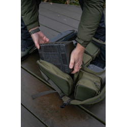- Esta versión compacta de nuestra icónica Ruckbag ofrece una capacidad ideal en un formato cómodo y práctico. Nuestro famoso sistema de enganche para sillas se mantiene, pero ahora es ajustable para adaptarse a una amplia gama de tamaños de sillas. Lleve su silla y su bolsa de una sola vez con facilidad. Los bolsillos laterales están estratégicamente situados para un uso óptimo, el compartimento principal más grande ompo mucho espacio para tu Tackle Blox y otros artículos esenciales. Las correas acolchadas para los hombros son ajustables y cuentan con una correa para el pecho para mayor seguridad.