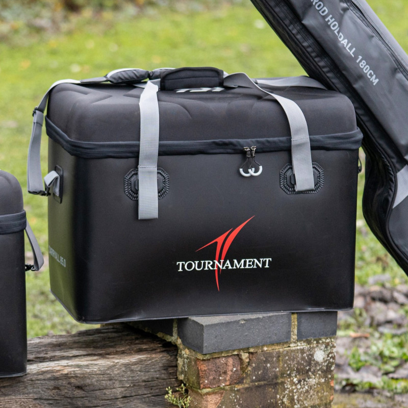 El Daiwa Tournament Carryall es un maletín de gran capacidad (85 litros) fabricado en EVA de alta calidad con una gran bandeja de inserción. Con un bolsillo con cremallera bajo la tapa para sus papeles, llaves o teléfono móvil.