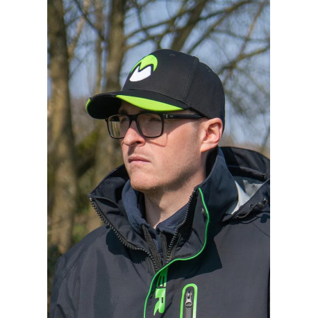 Esta elegante y deportiva gorra negra presenta detalles verdes en la parte superior e inferior de la visera en un diseño bicolor.