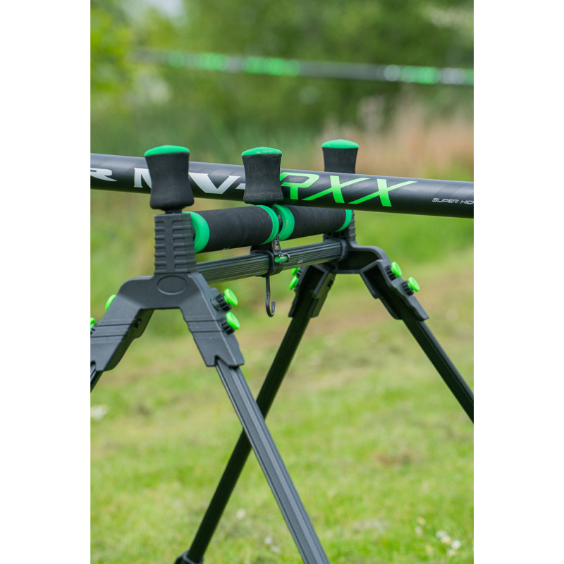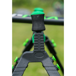 Los cuatro pies telescópicos permiten un ajuste sencillo en terrenos irregulares, con niveles de burbuja adicionales para una alineación perfecta y una estabilidad superior. Para una mayor resistencia en condiciones meteorológicas adversas, hay un gancho de lastre situado debajo para garantizar que el bastón se mantenga erguido.