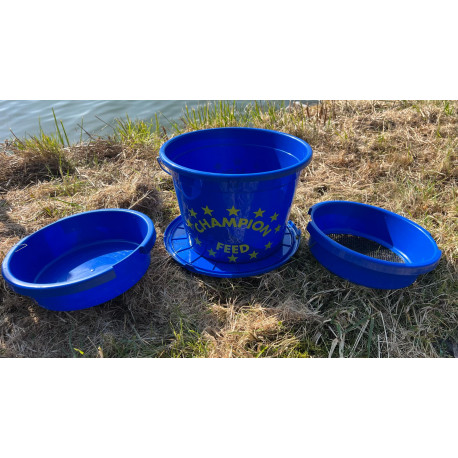 Nuevo set que incluye un cubo con tapa, un bol para mezclar y un tamiz de malla de acero de 4 mm, ideal para tamizar cebo o gusanos.