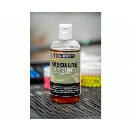 Fourni dans une bouteille avec un bouchon à pression, Absolute Fish Sauce peut être stocké dans votre sac de pêche ou d'appât et être utilisé lorsque nécessaire, prêt à donner à votre appât un coup de fouet instantané d'une intense saveur de poisson.