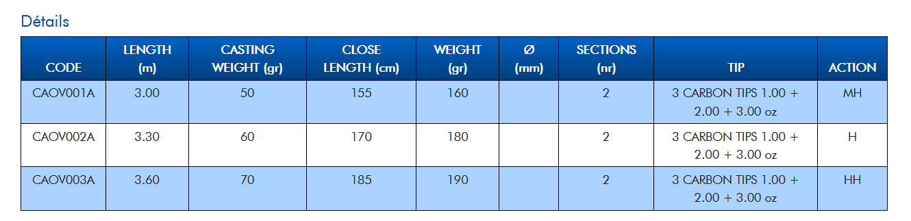 Caractérisées par une action rapide mais progressive, par une légèreté supérieure à la norme et par un équilibre parfait, ces cannes enregistreront certainement l'appréciation de l'agoniste mais aussi celle de l'amateur, qui pourra les utiliser dans tous les milieux de pêche et dans les situations qu'il juge les plus appropriées.
