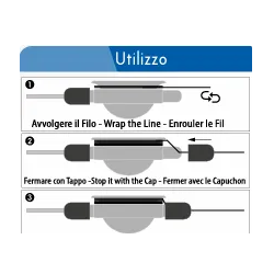 Connecteur avec une petite échelle intégrée qui permet au pêcheur d'enrouler le surplus de ligne sur le connecteur sans être obligé de couper la ligne ou d'avoir des torsions gênantes qui facilitent l'emmêlement de la ligne.