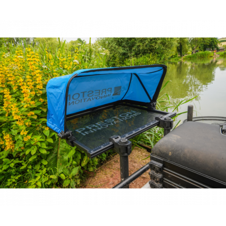 La taille idéale pour ceux qui ont besoin d’une grande quantité d’appâts, cette desserte latérale a la capacité de contenir jusqu’à 8 bacs d’appâts selon la taille. La desserte est munie d’un store, avec un système Snaplok, parfaite pour un retrait rapide. Le store est imperméable et de couleur claire, ce qui aide à réduire l’absorption de chaleur. La base Ventamesh permet à l'air de passer et ainsi garder vos esches placées dessus dans de bonnes conditions. Elle permet aussi à l'eau de s'évacuer en cas de pluie. Ce qui le rend parfait pour tous les temps.