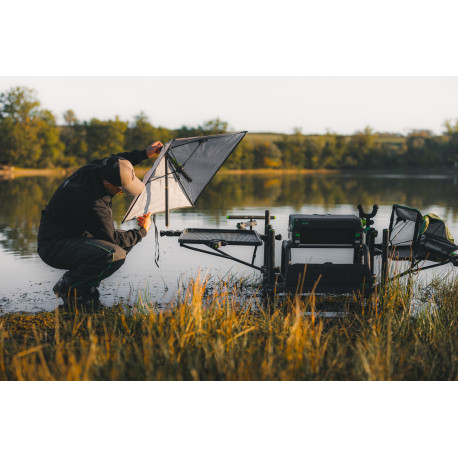 Le parapluie de pêche pour desserte Sensas est très pratique pour protéger vos esches des mauvaises conditions météo. Il assure une protection optimale de vos appâts et accessoires situés sur votre tablette. Il assure aussi bien la fonction parapluie en cas d'averse, que la fonction parasol pour protéger vos appâts vivants lors des pêches estivales où la chaleur est trop forte !