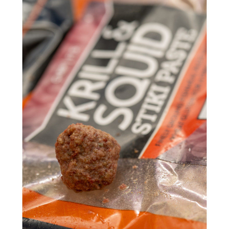 Un mélange de pâte de pellets finement moulus, enrichi en farines de poisson et combiné à du gluten de blé, confère à la pâte Stiki une texture fibreuse qui se dissout lentement et adhère autour de l’hameçon.