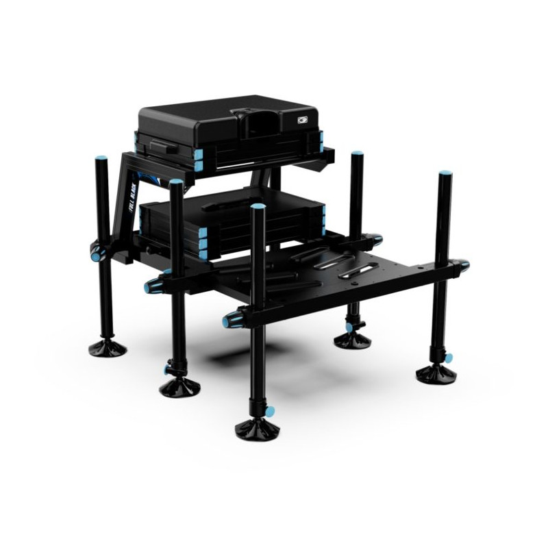 La Station compétition D36 – COMPETITION 800 FULL BLACK Garbolino est une nouveauté 2026, Elle est la synthèse parfaite entre l’exigence de performance en pêche au coup de compétition et une esthétique résolument moderne. Son châssis BLACK lui confère une allure haut de gamme et agressive, une impression renforcée par l’anodisation noire intégrale des six pieds : quatre télescopiques PINLOCK et deux fixes à l’arrière.