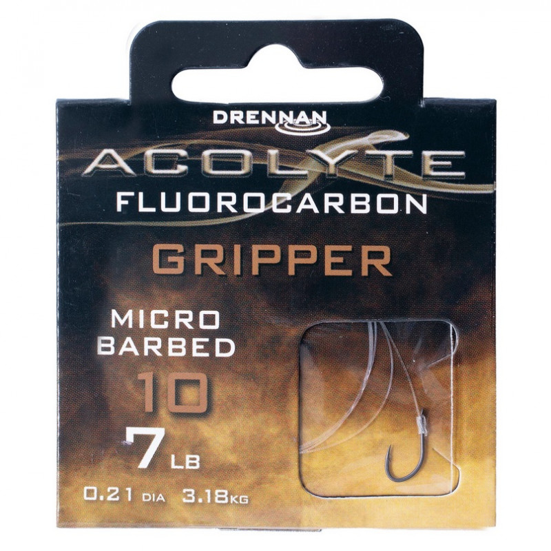 Acolyte Gripper micro barb hooks hand-mounted on 50cm of Acolyte fluorocarbon, for better bait presentation, for both float and feeder fishing.