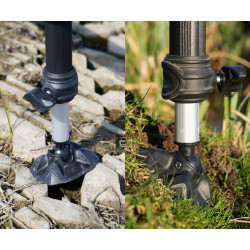 Whether you're lying down or sitting upright, the chair adapts to your needs. The chair is built on a sturdy aluminum frame and features four telescopic legs, each with a diameter of 36mm. These legs are fully adjustable and equipped with large movable earth feet, ensuring excellent stability on all types of terrain, from soft mud to uneven gravel. Each leg is secured with ergonomic twist-lock knobs, allowing for quick and secure adjustments without the need for tools.