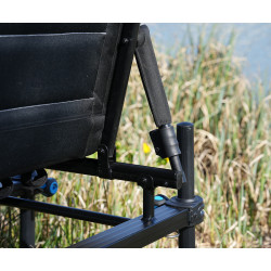 The Blackthorne Supa Chair 36mm is also highly versatile. The 36mm legs are compatible with a wide range of fishing accessories, such as rod holders, bait tables, and feeder arms. Each leg even includes a built-in screw hole on the top for direct accessory mounting, making it easy to customize your setup. For transport, the chair folds compactly by folding the backrest and tucking the legs behind it.