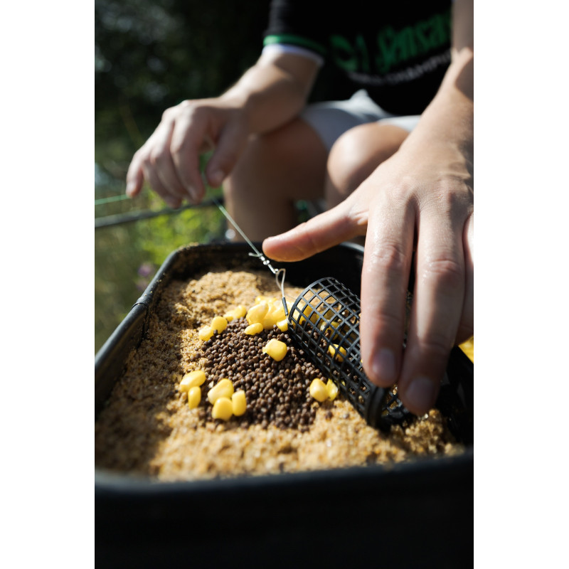 Una classica gabbia da feeder per esche con un certo peso iniziale.