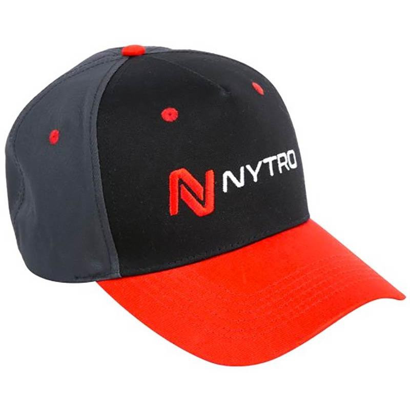 Cappello da baseball in cotone di alta qualità con visiera rossa con cinque file di cuciture e logo ricamato sul davanti.