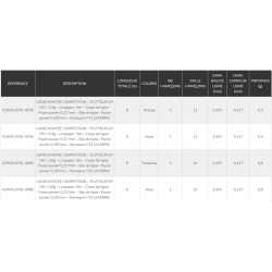 Componenti selezionati e schema di assemblaggio realizzati da Stéphane Pottelet. I componenti selezionati sono quelli utilizzati dai competitors di alto livello, parliamo ovviamente della scelta del galleggiante, del nylon per la lenza madre e del terminale: Fluoro power (nylon fluorocoated con resistenze lineari e all'abrasione ben al di sopra della norma), e della scelta dell'amo senza ardiglione in perfetta armonia per un risultato ottimale. L'assemblaggio della linea, il posizionamento e la scelta della qualità dei cavi (PUC) nonché delle loro dimensioni sono stati effettuati nel rispetto di una rigida carta