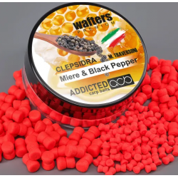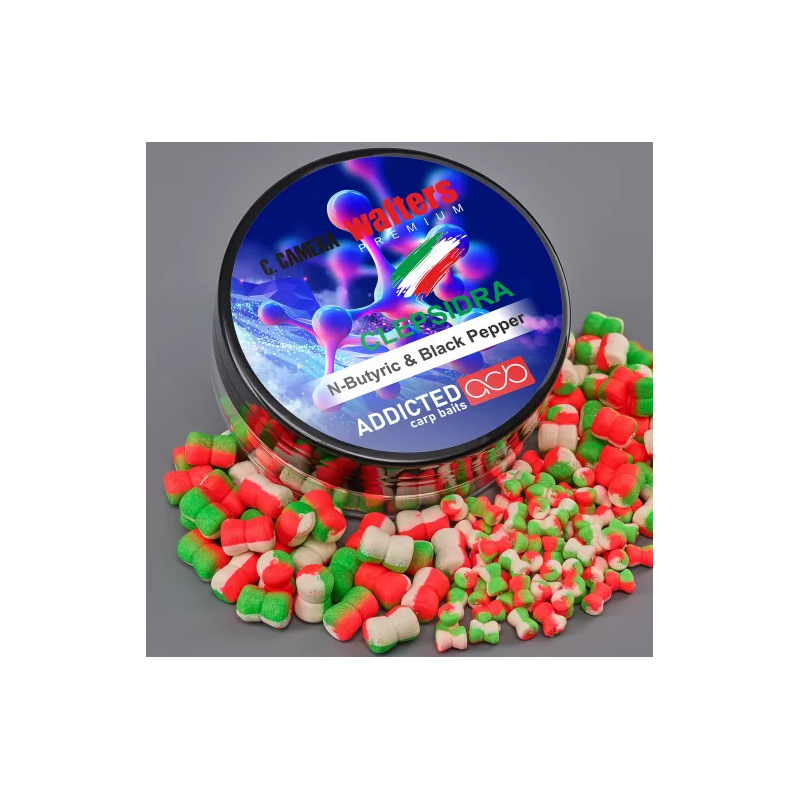I colori vivaci sono visibili in qualsiasi acqua e l'aroma di Pepe e Miele scatena un'attrazione irresistibile. Testati da pescatori d'élite, i Clepsidra Premium Wafters offrono un'eccellente galleggiabilità e prestazioni comprovate in qualsiasi ambiente.