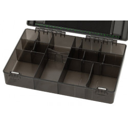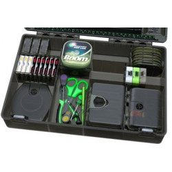 Molto più di una semplice Tackle Box, questo è il massimo per quanto riguarda la conservazione degli accessori. Ogni aspetto è stato studiato nei minimi dettagli. Di dimensioni maggiori rispetto ad altri sistemi di stoccaggio, come il Tackle Safe, questa scatola è destinata ai pescatori che desiderano portare con sé tutti gli accessori di cui possono avere bisogno in un'unica scatola e conservarli in modo organizzato per poterli trovare facilmente. La gamma di accessori adattabili a questa scatola offre numerose possibilità di personalizzazione. Il coperchio comprende 29 scomparti chiusi da coperchi incernierati in plastica trasparente che proteggono e identificano il contenuto. Questi scomparti possono essere utilizzati per riporre girelle, anelli, chiusure Heli-Safe, tubi termici o altri piccoli accessori.