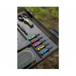 Abbiamo dimensionato attentamente il BLOX per contenere gli elementi essenziali dell'attrezzatura, come bobine di lenza, confezioni di ami e accessori. Aghi, slamatore e forbici si inseriscono perfettamente negli appositi alloggiamenti, mentre la scatola principale può essere regolata tramite divisori in base alle tue esigenze.