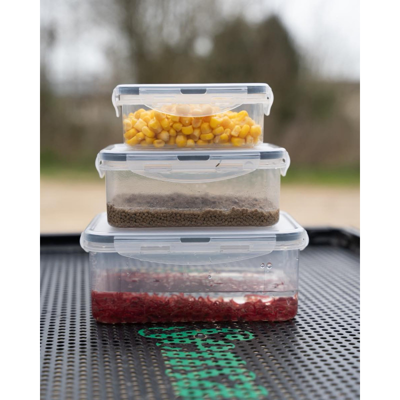 Questo set di 3 scatole (piccola, media e grande) è ideale per conservare esche e liquidi. Dotato di guarnizione in silicone e bordo interno per guidare perfettamente il coperchio e garantire una buona tenuta!