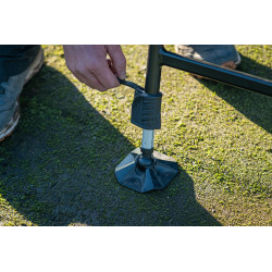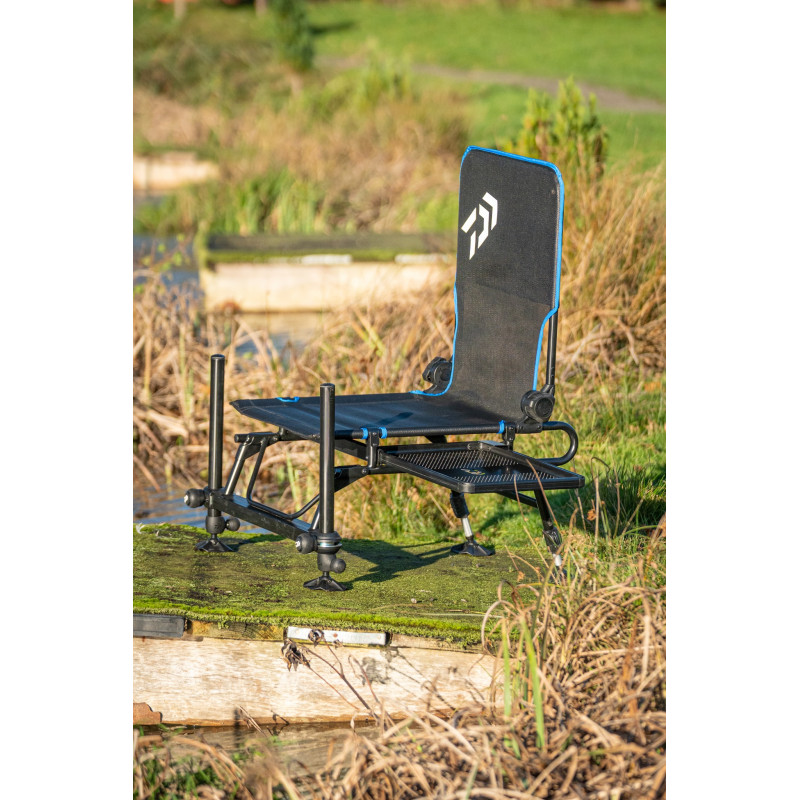 I grandi piedini inclinabili da 36 mm e la seduta regolabile in rete traspirante ad asciugatura rapida garantiscono stabilità e comfort su qualsiasi terreno.