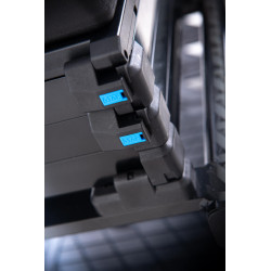 Il nuovo sistema di impilamento consente di riporre sotto il sedile in qualsiasi ordine cassettiere profonde o poco profonde e può anche essere rimosso dalla parte anteriore o posteriore della scatola.