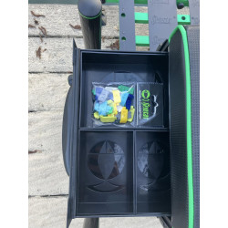 - Due piedini standard (diametro 36) - 1 rastrelliera alta 80 mm - 1 rastrelliera inferiore da 40 mm - 1 coperchio - Dotato di tre livelle a bolla per facilitare l'installazione - 1 cinghia di trasporto - Supporti per le ruote posteriori - Ganci di fissaggio per l'installazione su cemento.